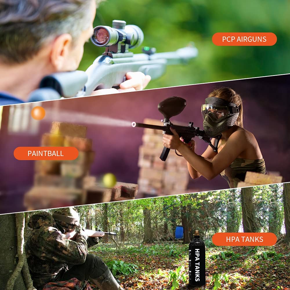 AN ESSENTIAL GADGET8MM Quick Connector & Oil-Water Separator are essential gadgets for mechanics and craftsmen. Both ends of the hose are 8mm Quick female connectors, which can directly fit the male nozzles of most PCP air rifles and paintball cylinders or Mini Scuba Tank. Moreover, the Enhanced Oil-Water Separator can efficiently filter oil and water in the air and fill the clean and dry high-pressure air. |