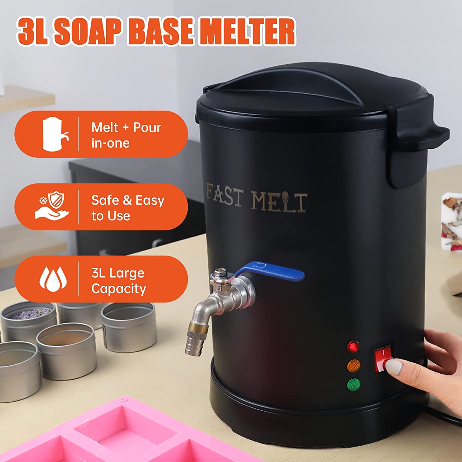 The electric soap base melter is fully automatic and operates at the touch of a button. You only need to stir the soap base when melting on and off for better . You can refer to our recipes to make all kinds of soaps and try different fragrance oil and finish them off with your favorite natural powders, mica, and eco glitter.